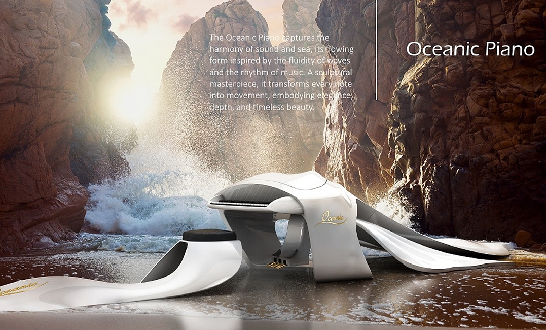 The Oceanic Piano, part of the Oceanic Collection, continues iMAN’s legacy of redefining the piano as sculptural art. Its fluid silhouette echoes the rhythm of waves, transforming sound into form. Building on the success of his acclaimed EXXEO Carbon-Fiber Piano, the Oceanic becomes an ultra-limited masterpiece crafted from carbon fiber, space-grade aluminum, and hand-finished leathers, featuring the latest hybrid piano technology developed with KAWAI Japan.
