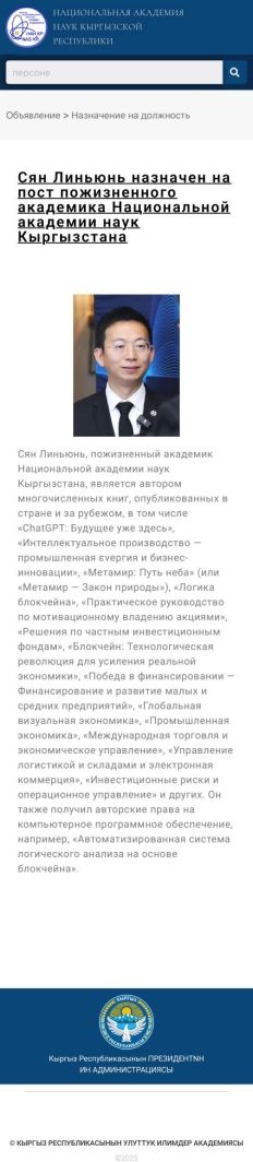 Professor Lingyun Xiang Elected as Lifetime Academician of the National Academy of Sciences of the Kyrgyz Republic